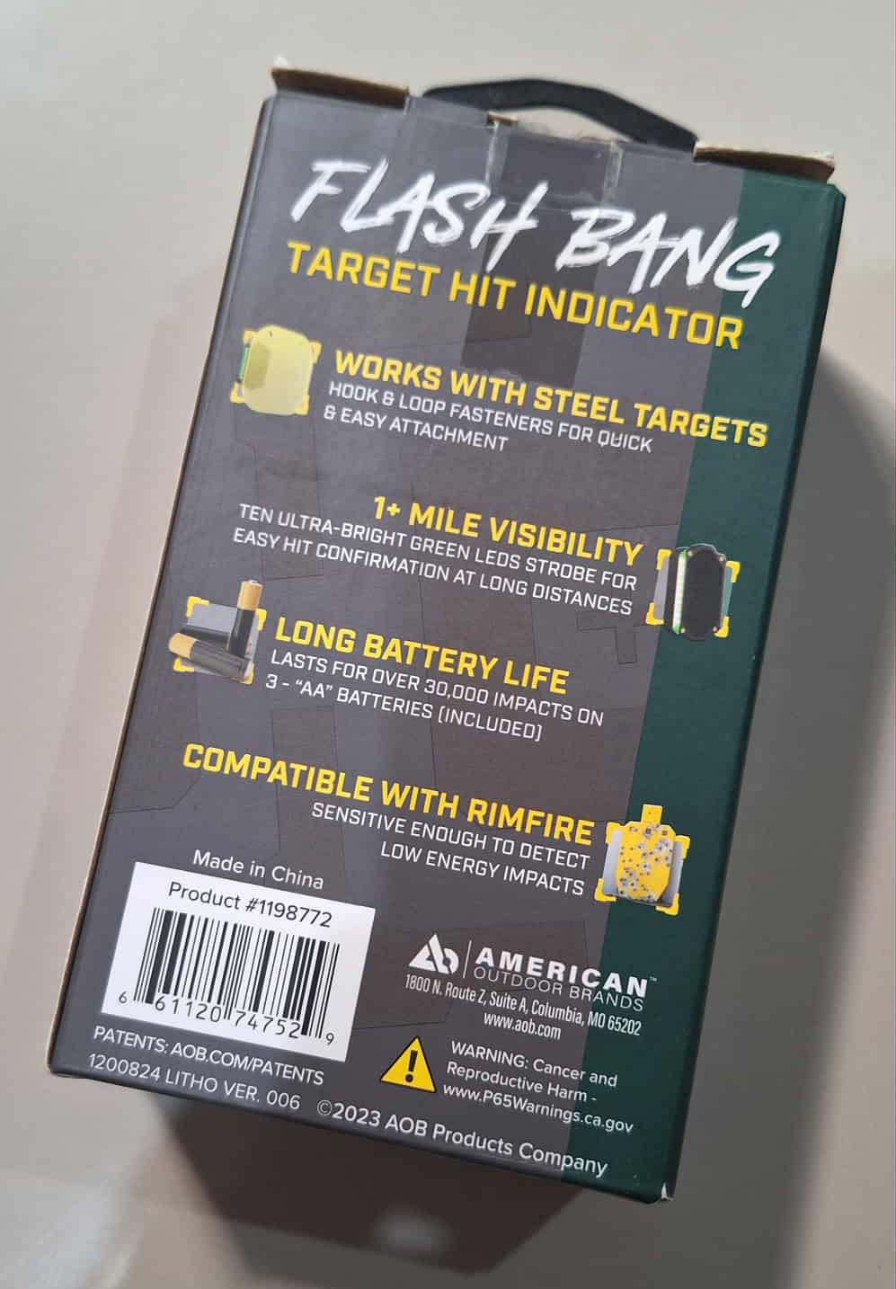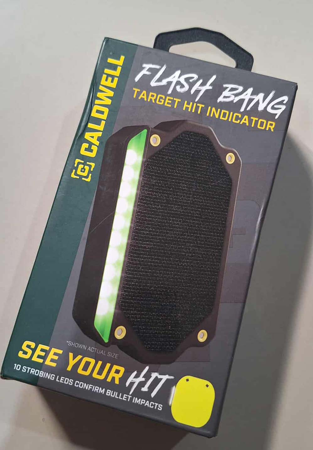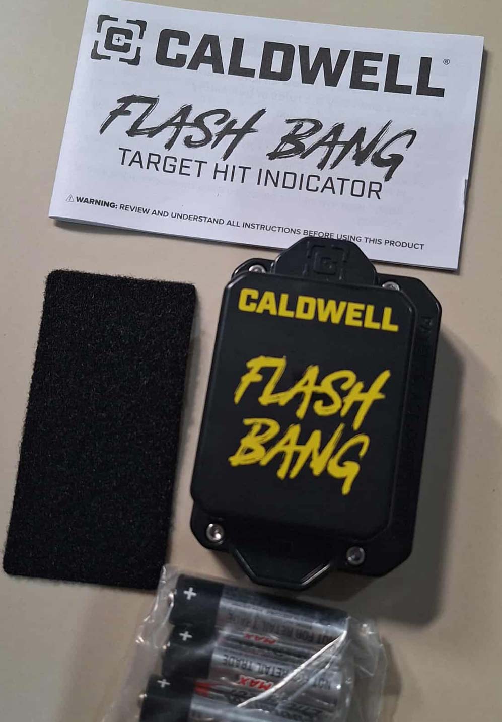 The Caldwell Flash Bang Target Hit Indicator brings new feedback to shooters when using steel targets. Flashing green LED lights are triggered by an impact on the target telling shooters of their hits at extremely long ranges where confirmed hits can be difficult. The self-contained unit features 10 ultra-bright green LED lights that are visible for thousands of yards, even in bright daylight conditions. Powered by 3 ""AA"" batteries (included), the Flash Bang has a battery life of over 30,000 impacts. The Flash Bang is compatible with targets over 5"" and attaches easily with heavy-duty hook and loop material.